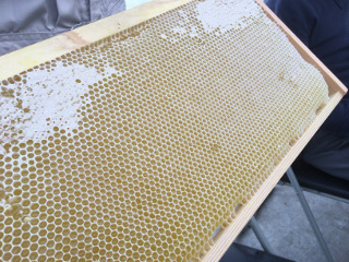 機械ではなく、こうして手作業ではちみつを採っているそうです。